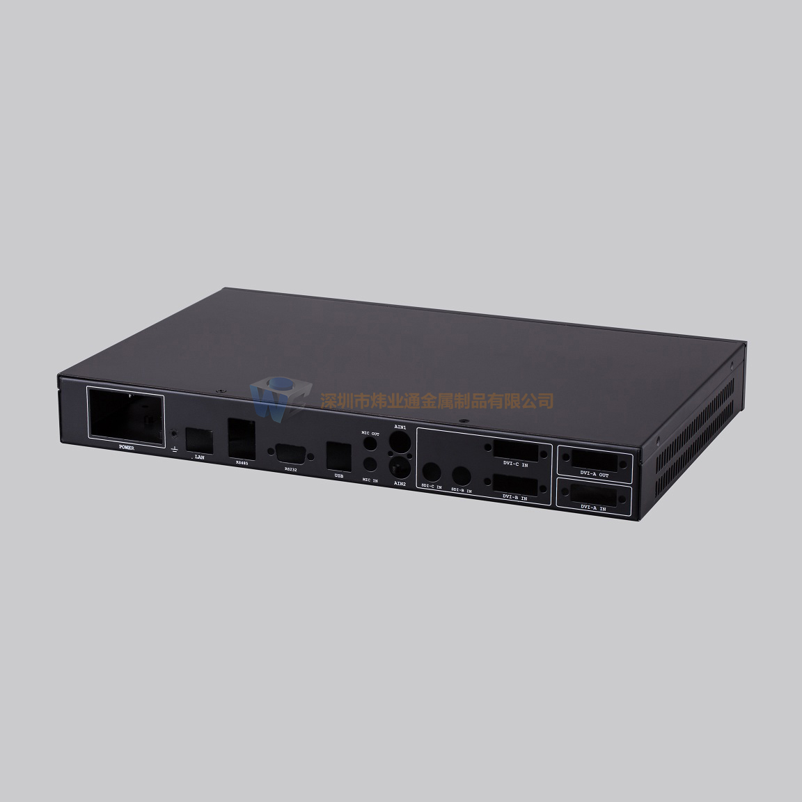 鋁型材面板采用氧化拉絲黑色、銀色或噴砂氧化黑色、銀色等,機箱底殼采用噴油或噴塑,顏色可以根據客戶要求;
